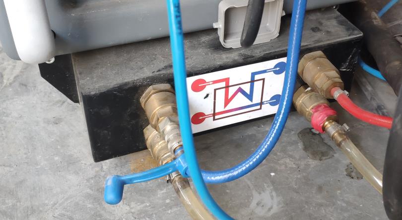 The plate heat exchanger is designed to be mounted on the SBI welding machine. It is developed for an external cooling of the torch coolant. The internal cooling circulation is also functional.